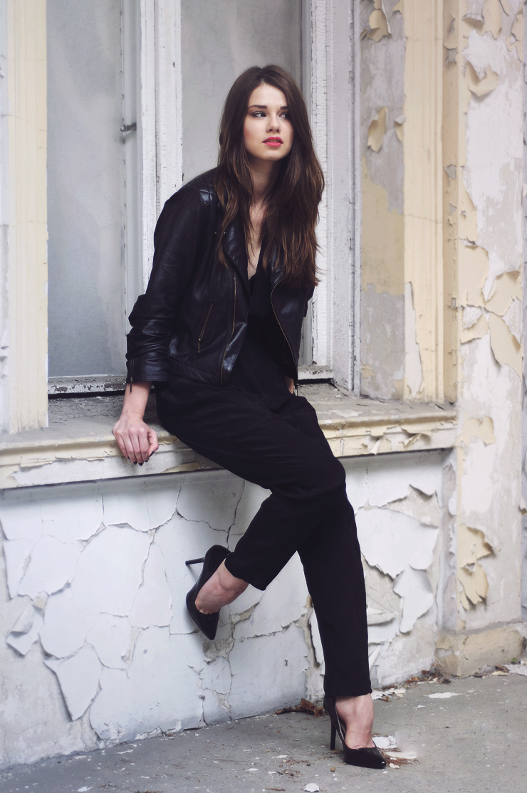 Mam dla was czarno czarny wpis! Ten kombinezon jest chyba najwygodniejszym ubraniem w mojej szafie. Pogoda za oknem nie należy już do najcieplejszych. Dzisiejszy dzień był pochmurny dlatego zdjęcia też maja dość szarawy klimat. Mam nadzieję, że stylizacja przypadnie wam do gustu !